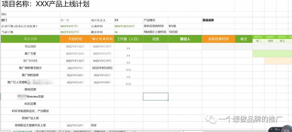 一:新品上市时间节点:比如产品什么时候发到海外仓,营销物料和前期准备需要多久,最终定一个上市时间节点,有利于做其他的计划方案。