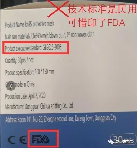 PS:如果有FDA标志就意味着美国医用标准,但执行标准是我国民用口罩的话,就有矛盾了。