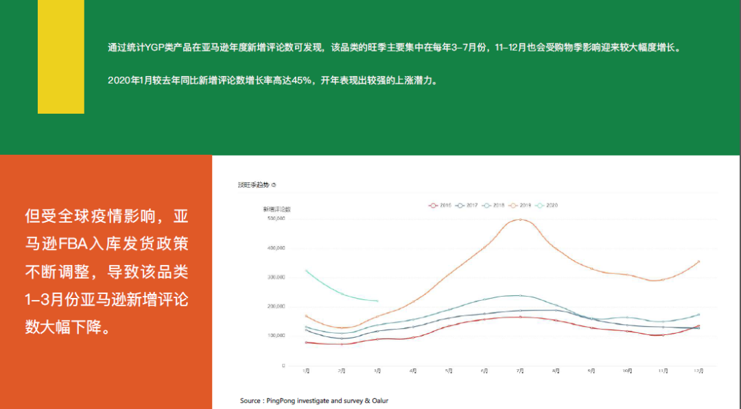 2020年1月,亚马逊园艺&户外家居类产品较2019同比新增评论数增长率高达45%,开年表现出较强的上涨潜力。但受疫情影响,亚马逊FBA入库发货政策不断调整,导致该品类在亚马逊新增评论数大幅下降。