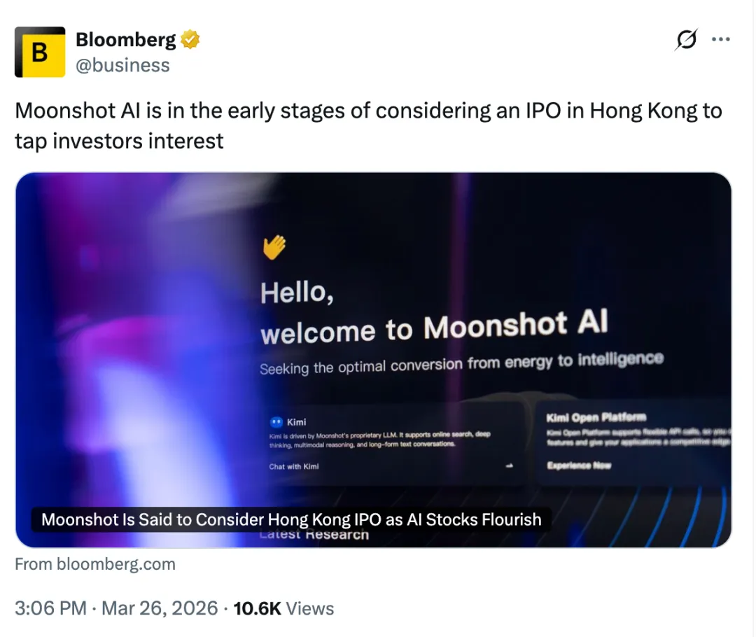 据彭博社报道,Kimi 背后的公司 Moonshot AI 正筹划上市。这一消息,将这家原本以技术能力见长的中国 AI 公司,再次推向更广泛的讨论场域。而几乎在同一时间,Kimi 在一场意外走红的“养龙虾”内容潮中迅速出圈,短短 20 天内所带来的用户增长与收益,甚至超过其 2025 年全年表现。