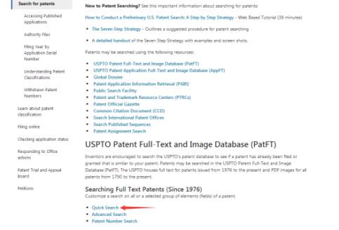(链接:https://www.uspto.gov/patents-application-process/search-patents)