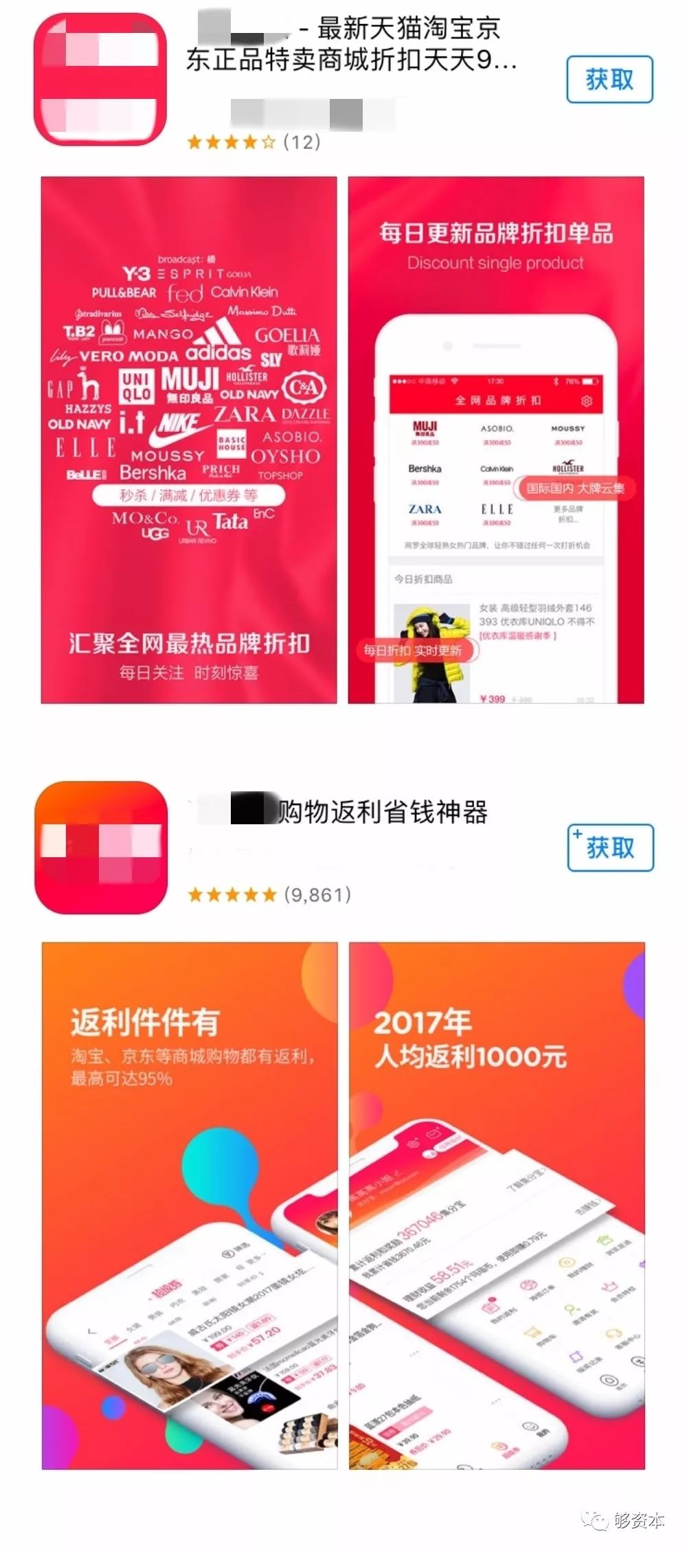 去Appstore,安卓商城搜索“折扣”。就可以搜索到大量的APP。大部分此类APP使用的都是一些半成品程序。一般来说,前端页面是H5。然后APP的周边是原生应用的组件。