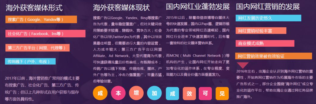 兴起原因, 海外获客媒体单一成本增加 , 国内网红行业成熟以及其效果推动