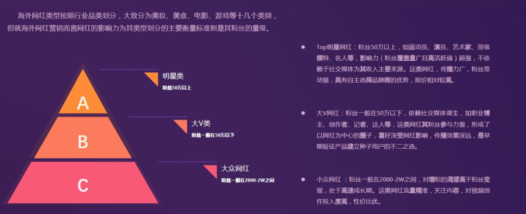 【海外红人营销 】:而海外红人营销则是借助海外红人在品牌或产品的潜在受众中的影响作用,推动客户喜爱并选择该品牌或产品举办的活动)