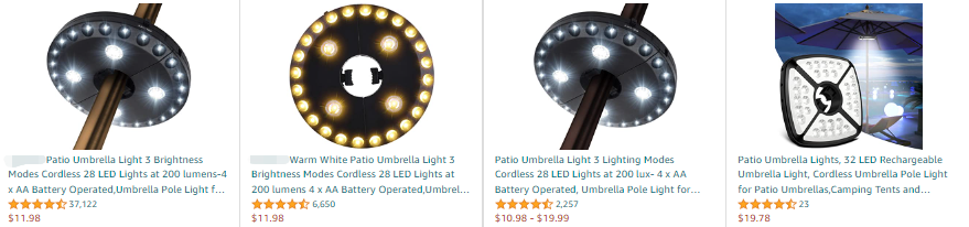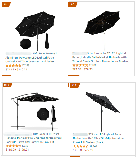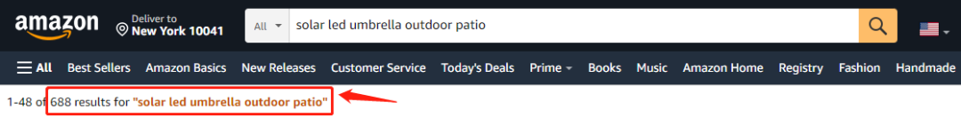 户外遮阳伞向来都是夏季热卖品,带有太阳能LED灯的可照明产品也颇受消费者青睐,输入关键词搜索发现,有680+相关listing在售,其中还有不少产品冲上Best Seller榜单,且排名相对靠前。