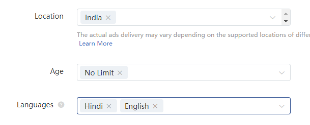 TikTok Ads广告平台针对语言定向进行了功能优化。现已支持“语言可多选或不限”选项以及放开“不同版位语言种类不同”的限制。