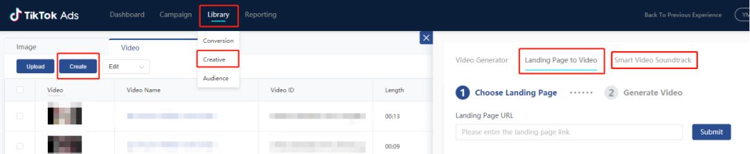 1)“落地页转视频工具”:广告主可以输入广告落地页的链接,一键生成视频广告,极大地提升了制作广告的效率。