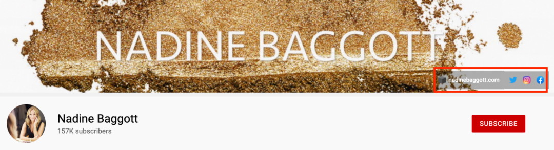 说明:YouTube 频道主图的右下角添加的网页锚链接。有些红人会放置自己的社交媒体账号。
