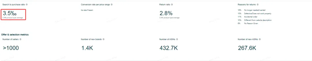 Category median(品类中位数):品类里“中等生”的水平,亚马逊把所有品牌的“表现数据”从高到低排个序,排在正中间的那个品牌的表现值。通过这个数据可以帮助我们判断自己的品牌是“高于平均”还是“低于平均”,但这里的“平均”是“中间值”,不是所有品牌的平均值(平均值容易被少数特别高或特别低的品牌拉偏)。