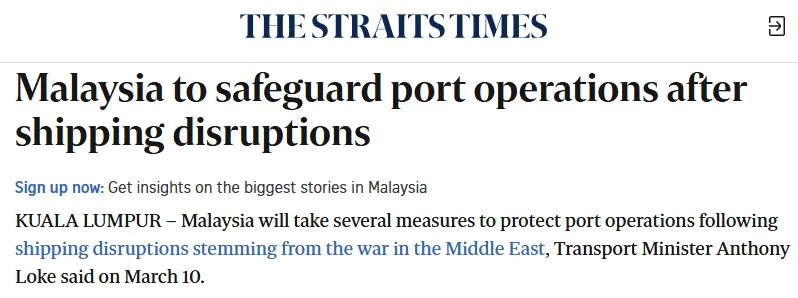受部分中东航线暂停运营影响,原本发往中东地区的货物大量分流至新加坡、丹戎帕拉帕斯两大国际核心枢纽港,致使两港出现严重拥堵。目前船舶平均靠泊延误时长已达 5-7 天,新加坡港一度出现数百艘船舶排队等候靠泊的情况。