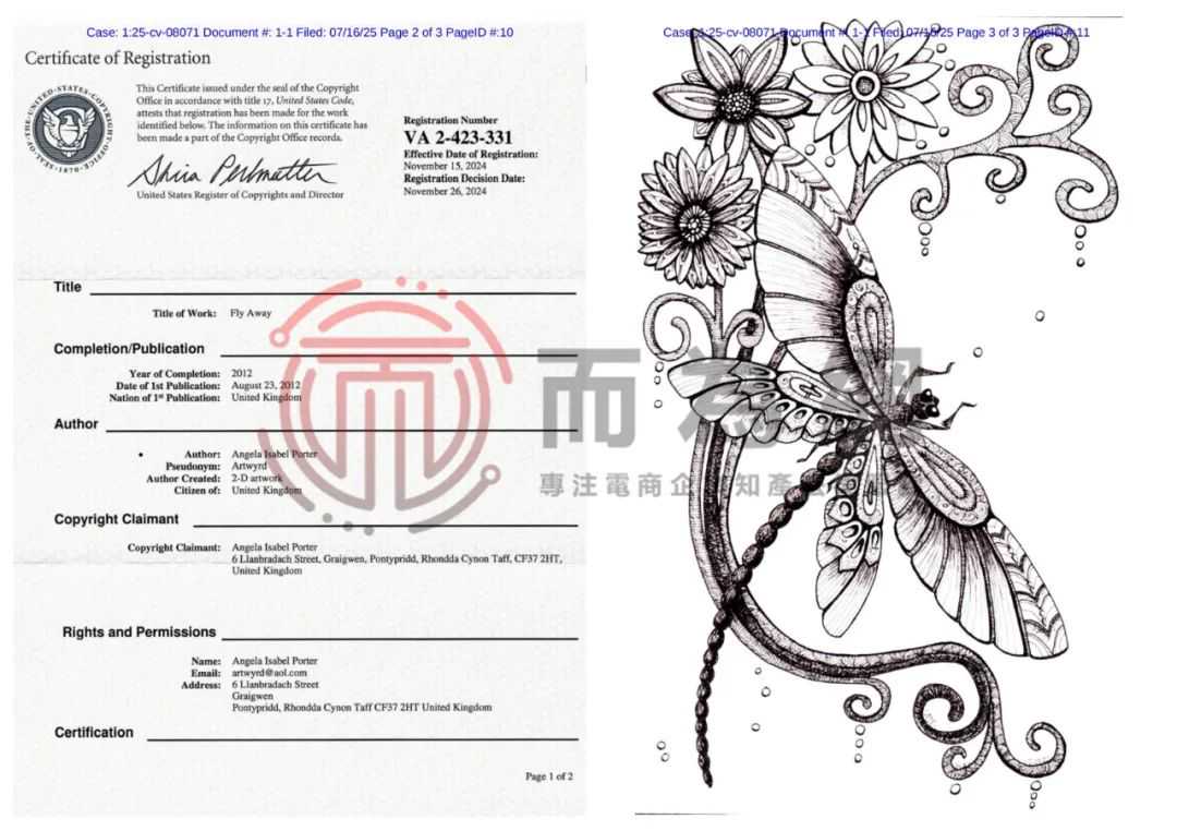 【侵权快讯】25-cv-8071 Keith新案持续不断!这张蜻蜓钢笔画不能卖了!