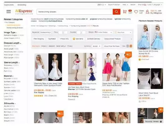如下图,搜索homecoming dress,商品标题中有homecoming dress,在搜索排序中就会有较高的得分。