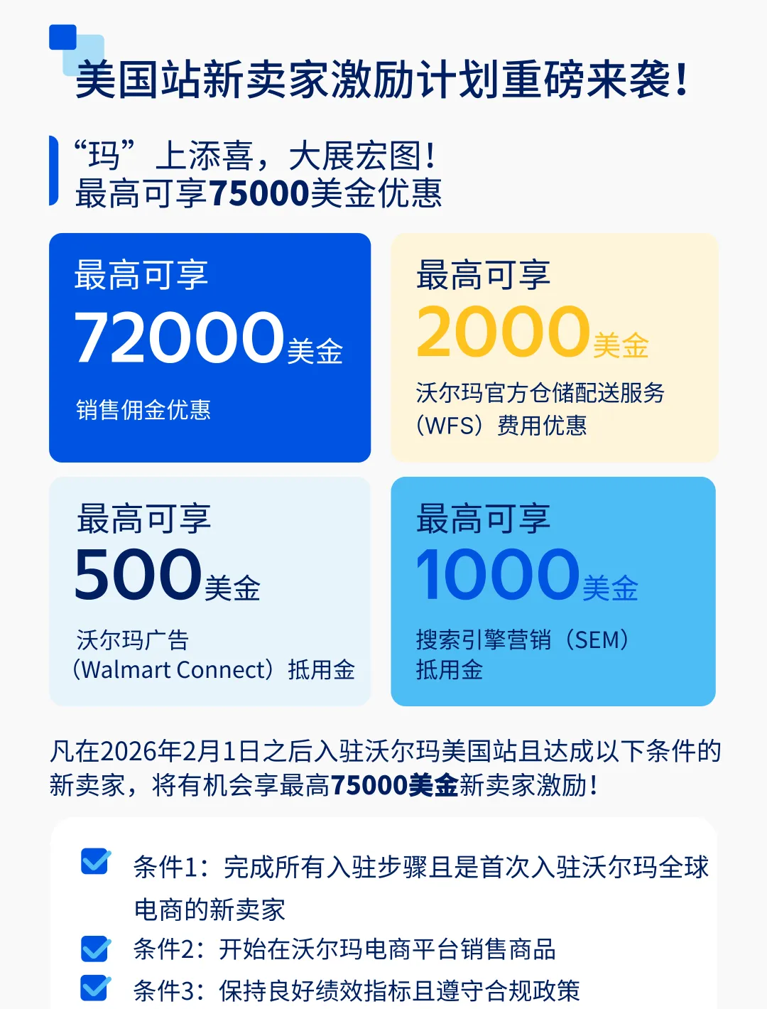 重磅!2026美站新卖家激励计划最高享75000美金优惠,加墨智激励升级!