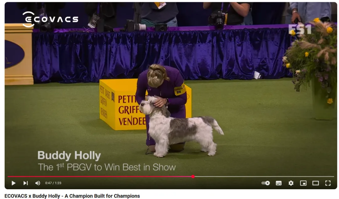 北美 38% 养宠家庭受毛发困扰,科沃斯让宠物犬 Buddy Holly 主演广告。视频里,它抖落毛发,X9 Pro 高效清洁,结尾趴在干净地毯打盹,配文 “宠物毛终极对手” 。