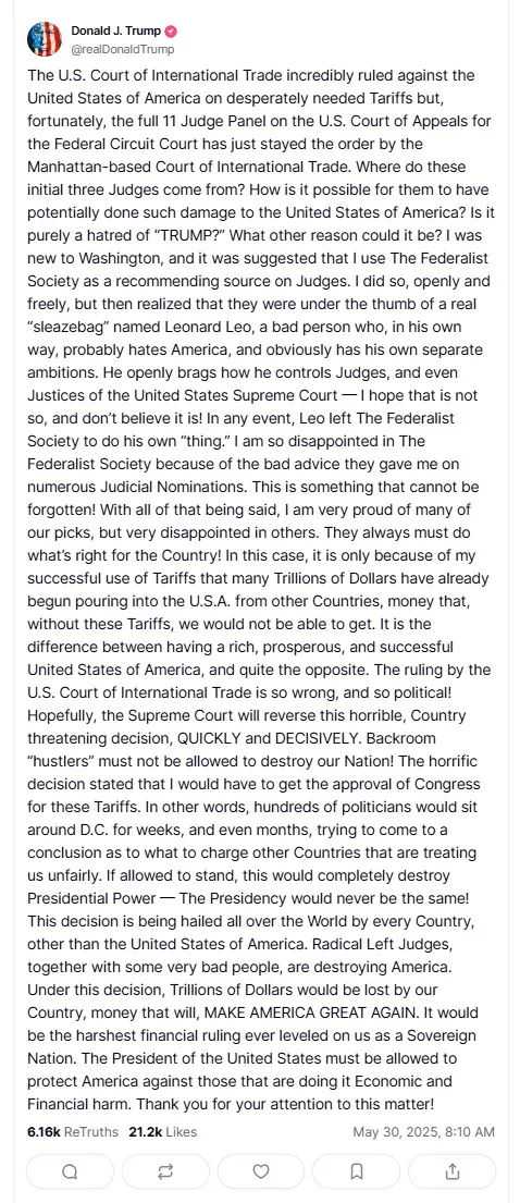 2025年5月28日,美国国际贸易法院(CIT)的一纸判决,给特朗普政府的关税政策当头一棒。这一里程碑式的判决,从法律和宪法两个层面,对政府的关税政策进行了全面而深刻的剖析与否定。