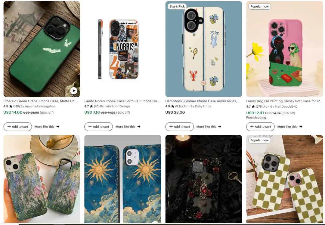 很多新手一上来就做首饰、手机壳,结果立刻掉进红海,捞都捞不到,跟无数店铺拼价格。 样式那叫一个多姿多彩。