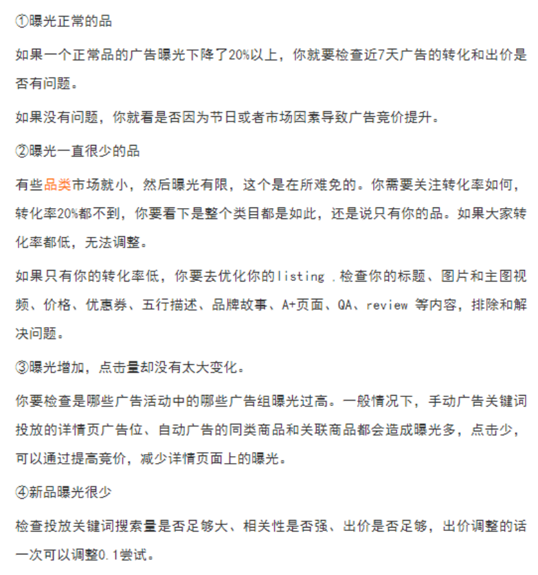 ①如果你的订单转化率比平时减少了20%以上。那就要首先确认查询时间范围是否有误,然后观察两三天,是否依旧转化率降低,如果还是转化率降低,你就要检查你的曝光、点击和广告位和之前的变化,检查你上次调整内容,逐步恢复原样。