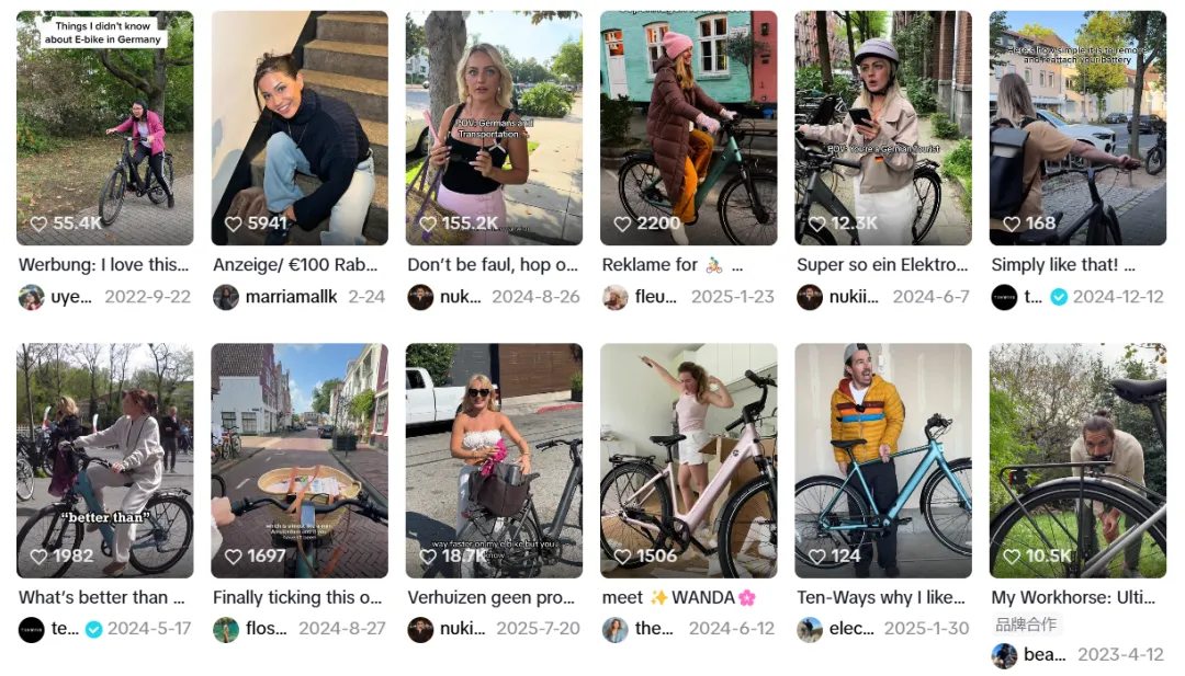 在欧洲,E-Bike不仅是交通工具,更是一种生活方式。TENWAYS深谙此道,在社交媒体上持续发力,重点布局Instagram和TikTok两大平台,通过短视频和故事性内容触达年轻用户;同时还在YouTube上和众多资深测评博主合作,围绕整车性能、续航表现与骑行体验进行深度评测,增强专业背书与信任度。