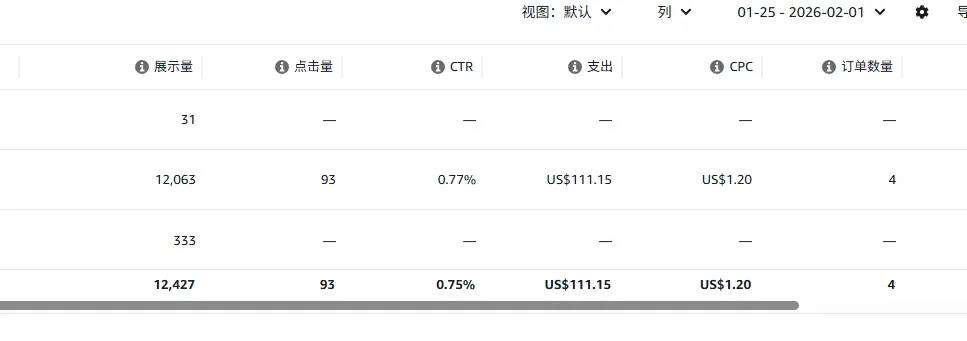 最后是点击率达标但转化率低迷(如下图所示情况)。这里个人觉得需要优化链接的附图和A+页面,附图需要强化核心卖点、使用场景和功能展示,A + 页面则要补充更详细的产品细节、信任背书和差异化优势,以此打消买家下单顾虑,吸引用户产生购买欲望。当然也存在主图足够吸睛,但是产品确实无法满足用户的情况这个属于产品范畴在分析listing是否需要优化的前提下,此部分应该另行分析