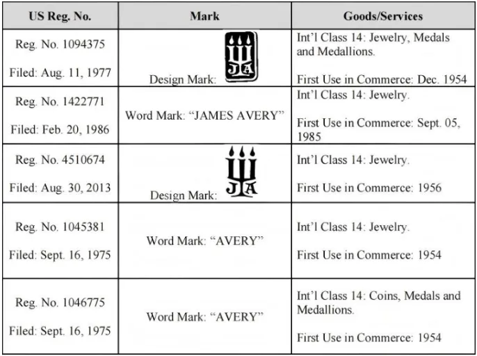 需小心JAMES AVERY、AVERY以及含J、A字母烛台等商标,未经授权切勿擅用: