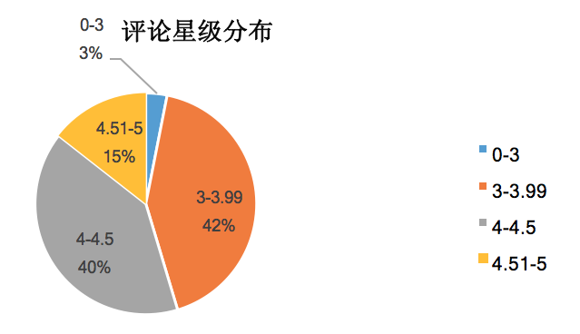 在本期Straighteners品类Best Sellers榜单前一百的商品中,商品评论星级最高为5星,最低为2.5星,平均评论星级4.28星。其中评论星级分布在4-4.5星的商品数最多,占比40%,有42%的商品评论星级在3-3.99。品类平均评论星级较高,产品改进空间较小。