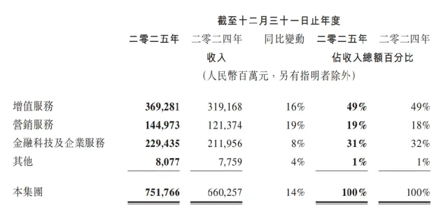 3月18日,腾讯发布2025年第四季度及全年业绩报告。2025年,腾讯全年收入同比增长14%,达7517.7亿元;非国际财务报告准则归母净利润同比增长17%,达2596亿元,增速较上年加快。