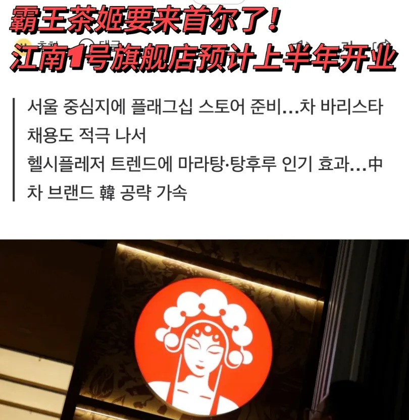 其实早在今年一月份就有相关消息传出:“霸王茶姬确定将于今年上半年正式进入韩国市场。首家门店计划开在首尔核心商圈——江南,作为韩国的1号旗舰店,先测试市场反应。”
