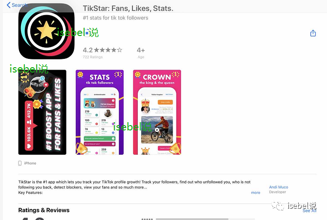实际上,之前我们就有想到这类衍生产品,不过这种产品需要有相应的技术开发能力。还是动作快的先动起来,才能迅速圈一波流量了,这几个app 的评分非常高,在谷歌和苹果app store 的关键词优化也做的不错。搜tiktok 就直接排前,这类工具只要产品打磨的好,App store 内用户自然增长很可观。说到这里,你会发现,其实这类产品有个总的名字,叫做基于TikTok平台的衍生服务产品。这种变现小项目非常适合技术型团队,通过小步快跑迭代出一个解决用户主要痛点功能的demo版本,类似的产品如基于TikTok平台数据的互点互赞平台,以及网红分析平台,批量处理工具等等。