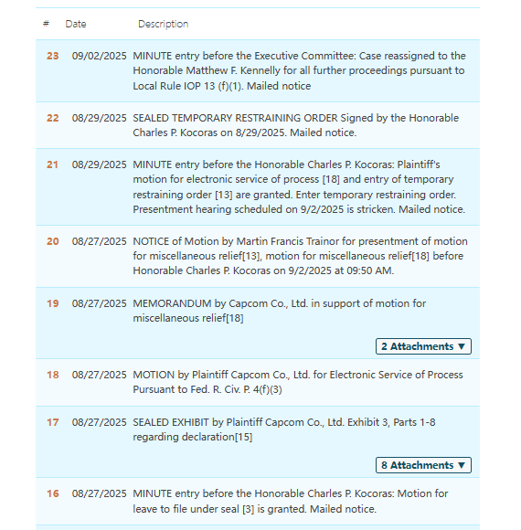 原告是于1979年,最初以电子游戏机制造和分销起家,凭借前沿技术和软件在视频游戏市场迅速树立良好声誉,如今已成为视频游戏行业的领军企业。其打造了《生化危机》《鬼泣》《怪物猎人》《逆转裁判》《洛克人》等多个标志性游戏系列,《生化危机》自 1996 发布,已推出23部续集、重制版、扩展包和衍生作品,围绕安布雷拉公司的T病毒引发的丧尸危机展开,后续作品还涉及病毒爆发后的余波等内容。该系列不仅游戏销量可观,还衍生出多部电影、电视剧等作品,在全球拥有庞大粉丝群体。