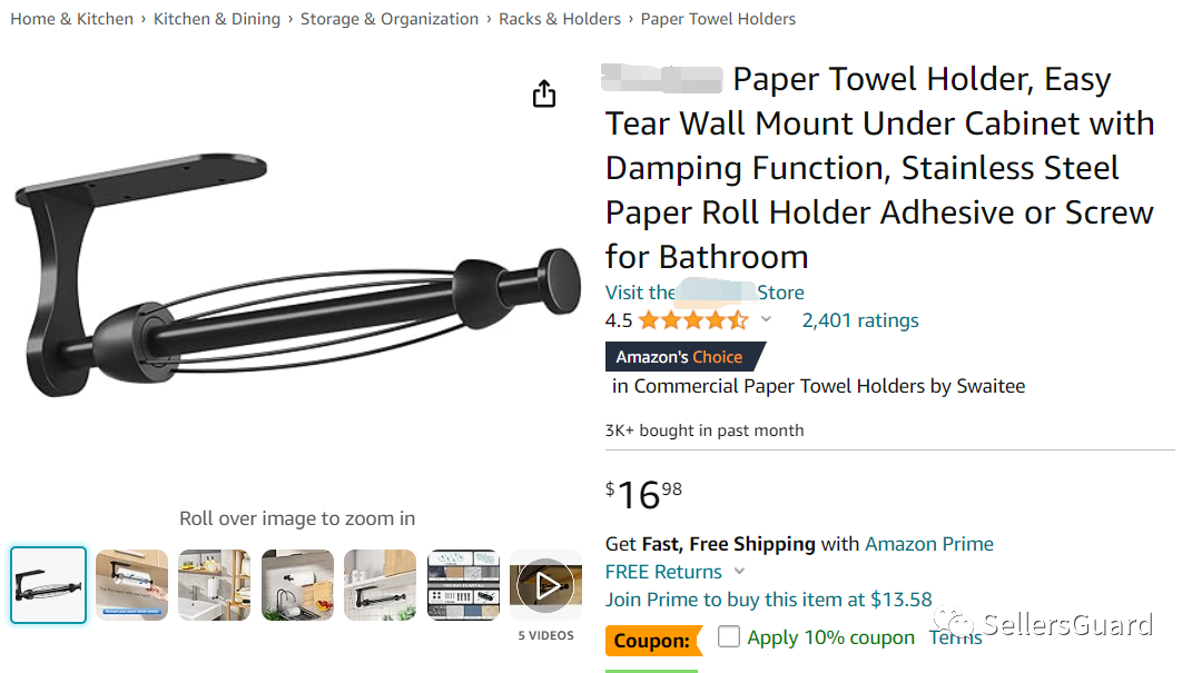 疑似与该外观专利高度相似的亚马逊产品链接截图,当前有60个留评: