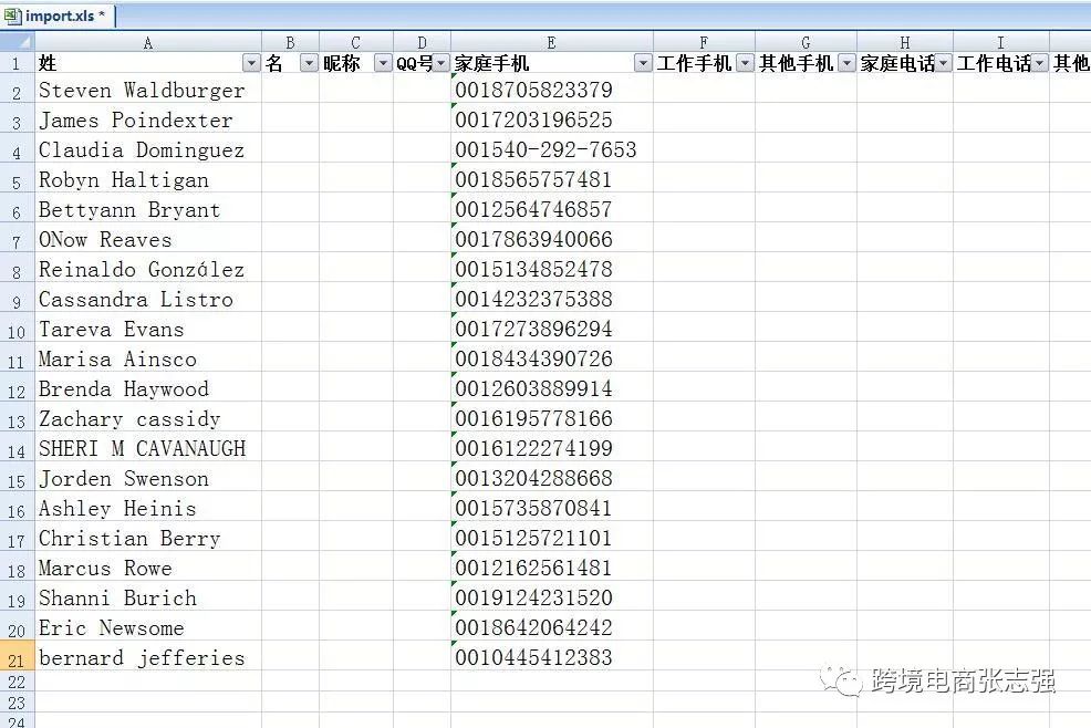1.首先呢你需要想办法弄到真实的美国人的联系方式,我说下这些美国顾客的信息怎么来的。一直以来呢我助理负责对接货代,平时大件小包都在这家发货,助理跟货代客服关系蛮好的,就直接跟客服说能不能给点你们发易邮宝或者其他小包的信息给我们,最近想推新品。然后货代小妹就给了2W条信息,收到的信息是这样子的。
