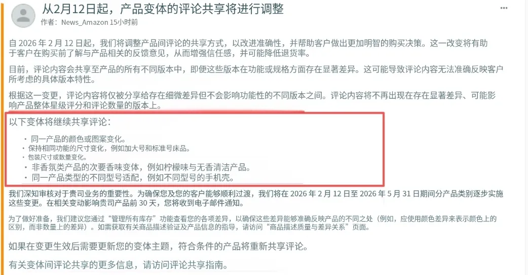 从2月12号开始,亚马逊将严格限制变体间的评论共享。