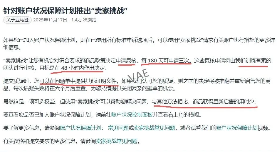目前,卖家挑战仅适用于注册了“账户状况保障”计划的美国卖家。