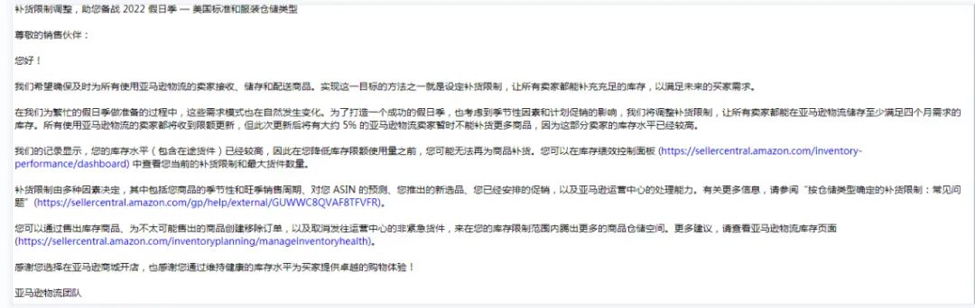 虽然早在八月份的时候卖家就收到了邮件亚马逊补货限制的消息,便以为不会再次大幅度调整。