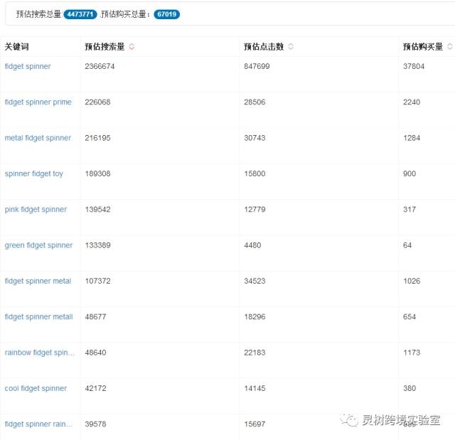 通过这样加词和调换顺序,很容易找到一大批长尾词。亚马逊提示框里的词都是根据搜索记录统计的,搜索量越大的越有可能出现在提示框里,所以能出现在搜索提示框里的,都是比较重要的。这里树苗哥推荐一个更简单的方法,使用Linkdata的关键词分析系统,只要输入核心关键词,通过系统的模糊搜索功能,只要搜一次,就能找出所有长尾词,不仅如此,还有关键词的搜索,点击,购买等核心数据,关键词重要程度一目了然,如下图: