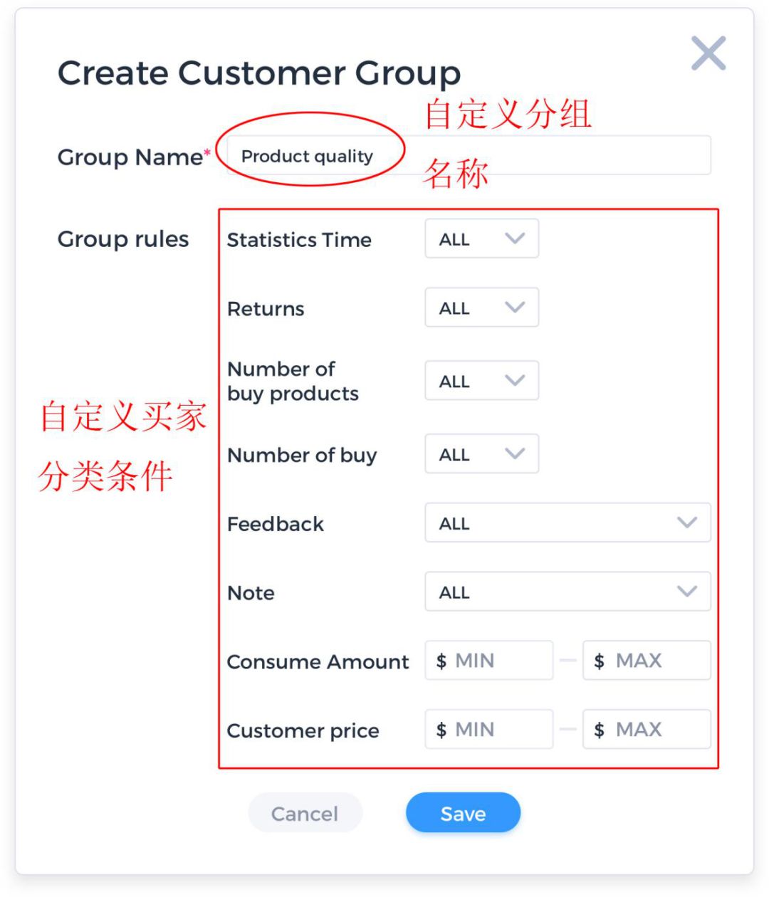 4、自定义规则功能,让卖家可以随心所欲创造自己的买家group,并根据自己的经验分出不同的group进行精准营销