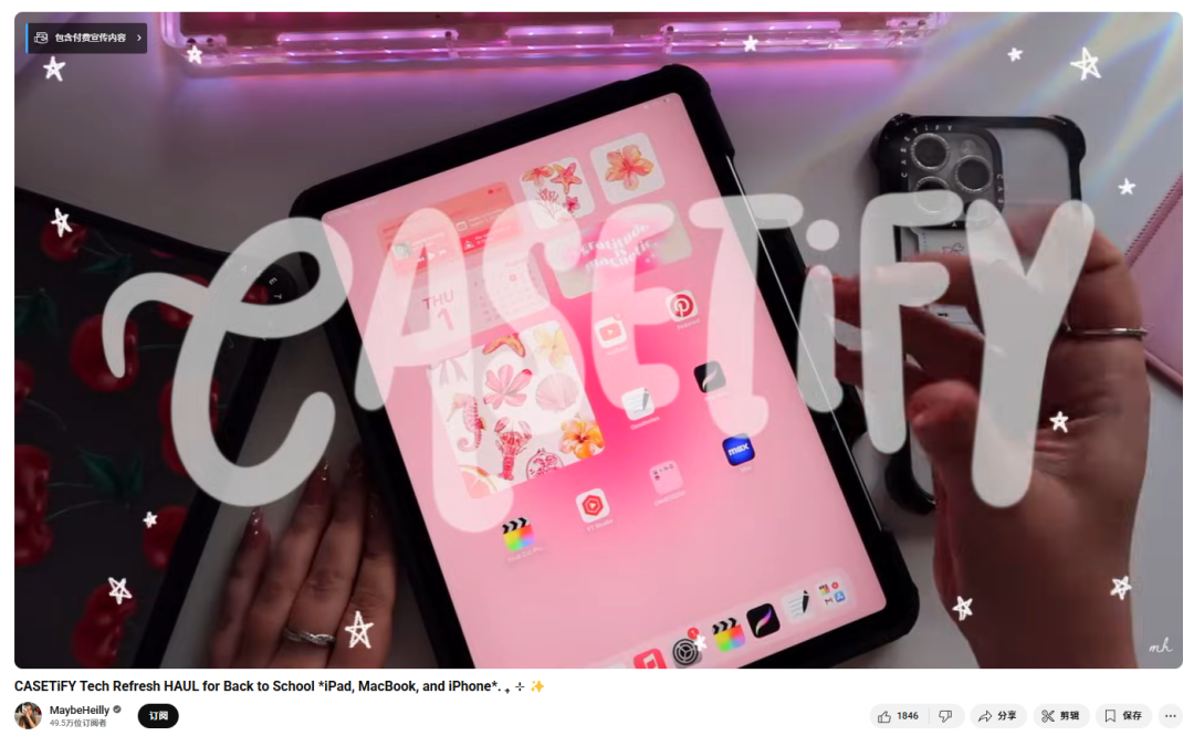 在 2024 年返校季来临之际,Casetify 联合一位专注生活方式与科技配件的 YouTube 博主发布了题为 "Tech Refresh Haul for Back to School" 的开箱测评视频,内容风格活泼,精准切中学生群体在开学前对电子设备保护与个性表达的双重关注。