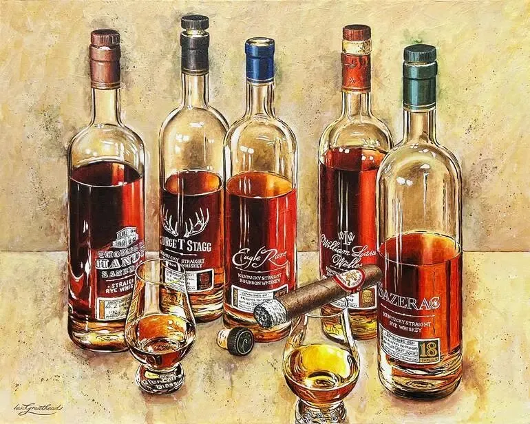 Greathead是首屈一指的原创艺术家,擅长在画布上创作个性化场景的定制油画,其作品主题涵盖葡萄酒、威士忌、波本酒等。