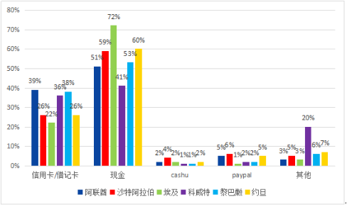 作为一个15岁~29岁人口占比超过28%的地区,中东的电商行业正在迅速增长。根据世界银行预计,中东地区的手机覆盖率高达96%,互联网覆盖率达88%。在中东地区,电子商务在各国的渗透率为:阿联酋46%、沙特阿拉伯25%、黎巴嫩9%、埃及8%、科威特35%。