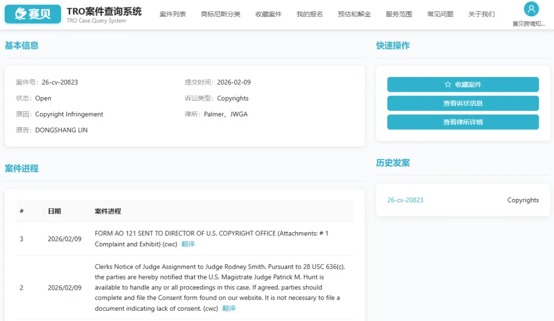 目前案件还未有重大进展,卖家可以在赛贝TRO案件查询系统免费下载诉状和跟进案件最新进度!(公众号菜单及赛贝知识产权官网均有入口)