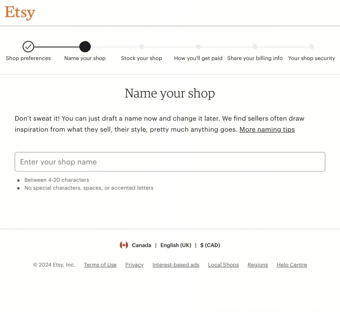 2.设定店铺名称:名称需为4-20个字母,禁止包含空格和特殊符号,可先拟定草稿后续修改;