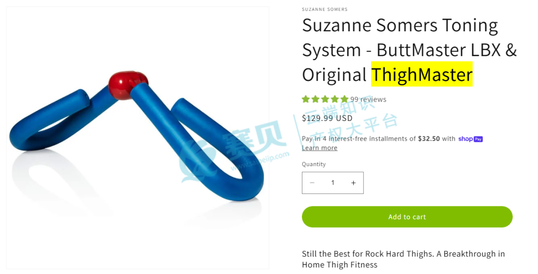 这次涉案的 THIGHMASTER 商标,属于第28类,是健身、体育用品的核心分类,像健身器械、运动器材都在这个分类里。赛贝得提醒各位跨境卖家,只要你的相关产品标题、描述、包装上用了 “THIGHMASTER”,都很可能构成侵权!