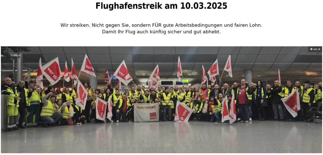 当地时间3月10日0点,德国多个机场开始举行24小时罢工。