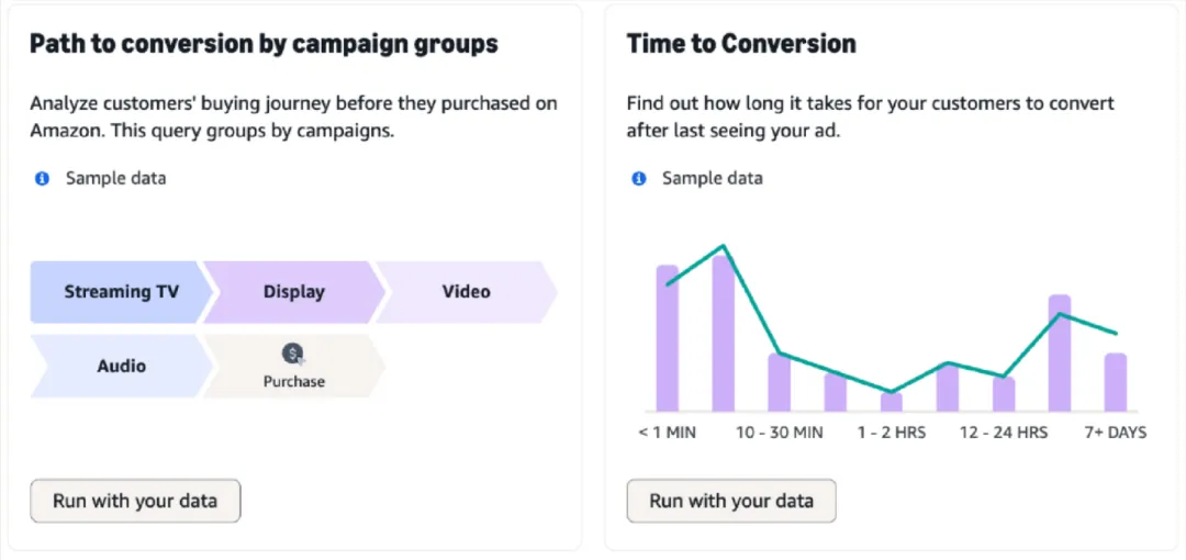 即亚马逊把用户在站内的广告接触、点击、浏览、购买这些行为,打包成匿名数据,允许你用查询的方式去分析。