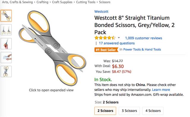 品牌为 Westcott的钛合金剪刀在上周同样表现稳定,6次跻身榜单前五,以平均排名4.71的成绩位列综合排名第三。