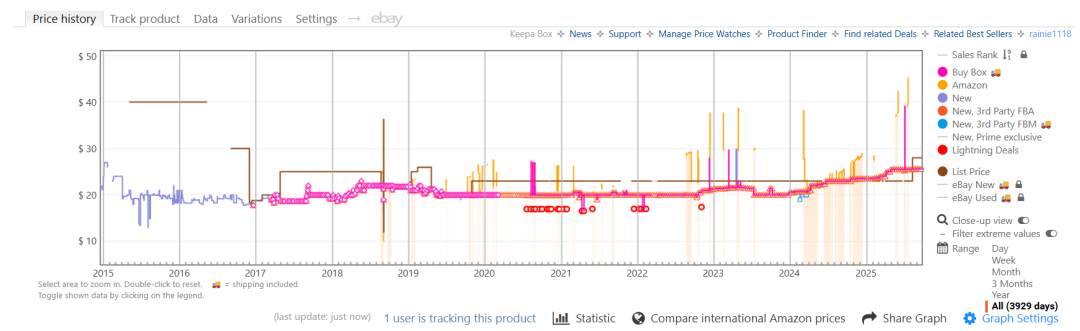 粉色线(Buy Box)=多数买家成交价;