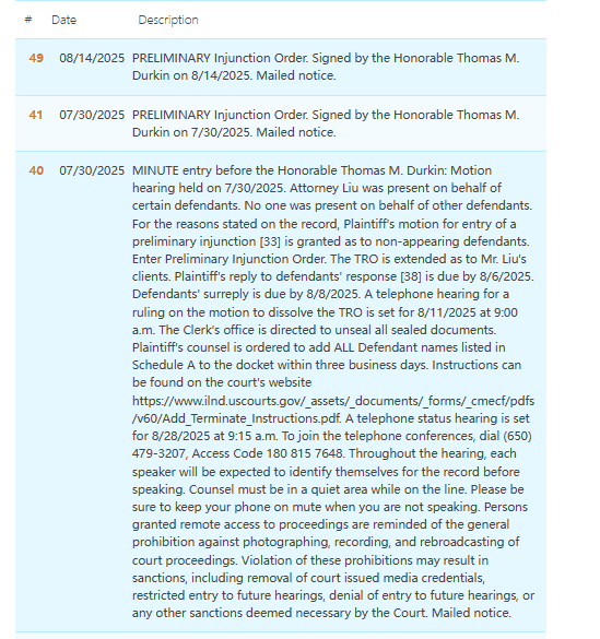 此案为商标维权,目前在Shein平台,已经冻结了101家店铺,注意原告在美国注册了50个商标,涉及ARSHINER、AVIDLOVE、COOFANDY、EKOUAER和ZEAGOO等,跨境卖家一定要注意检索下架,未经授权均不可擅自使用,侵权风险极高!以下是涉案商标信息,可供卖家参考,避免TRO侵权损失!