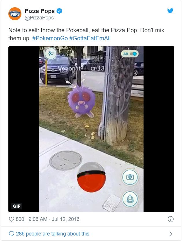 就拿以下来自Pizza Pops的推特做个例子吧,他们利用Pokeman Go的热度炒作了一下。