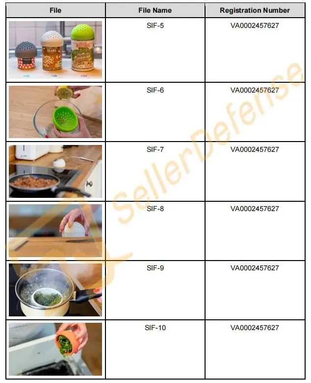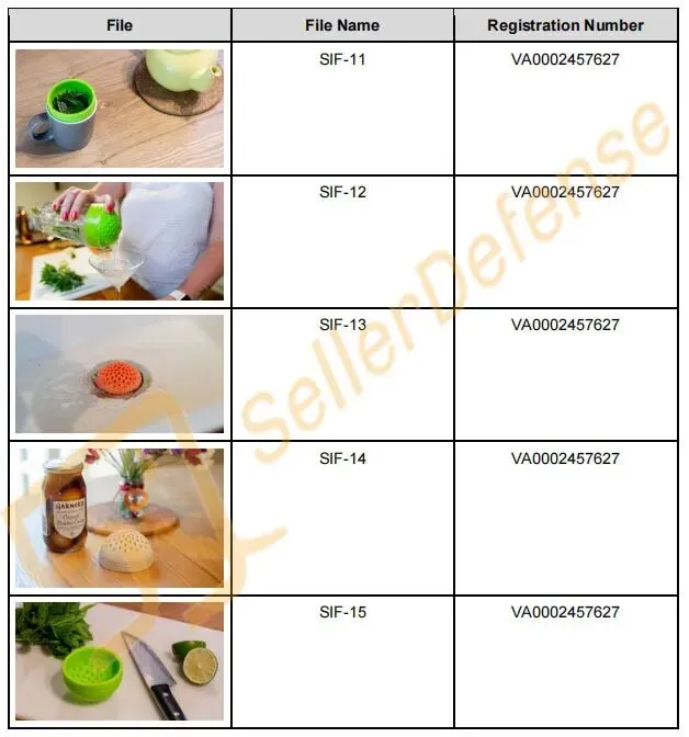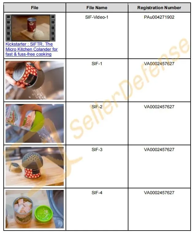 原告 BOXED DESIGN LTD. 是 SIFTR 的创造者、制造商和销售商。SIFTR 微型硅胶滤网是一款食品级硅胶微型滤网,可放入洗碗机清洗,专为过滤罐装食品而设计。SIFTR 微型硅胶滤网用途广泛,包括榨取柑橘类水果汁液、用作草药浸泡器等。