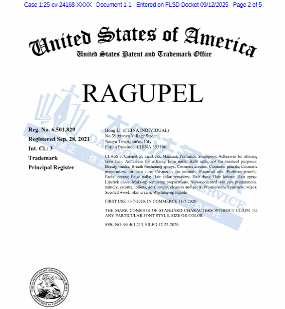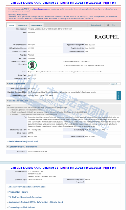 原告是来自英国伦敦的综合企业,深耕美妆护理等领域。旗下产品线主要以RAGUPEL 为主,从日常所需的棉片、湿巾,到化妆品、护肤品,再到各类日化用品和美容工具,一应俱全,每一款产品都经过精心研发与严格质检,旨在为消费者带来高品质的使用体验。